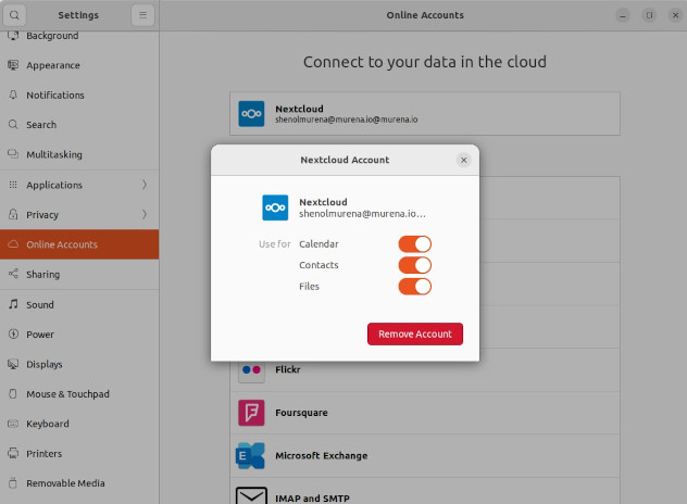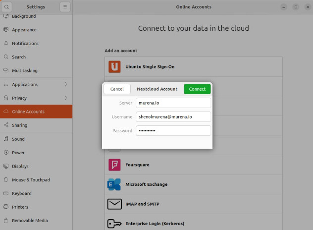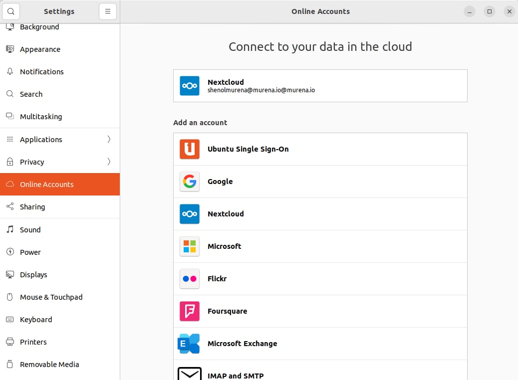 You should now be able to see the newly created connection under Settings » Online Accounts