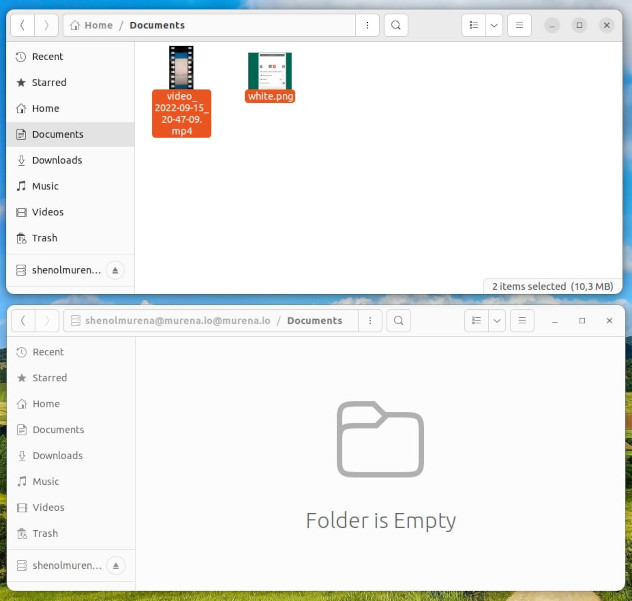 You can now copy folders and files from your local PC to the Murena Workspace. In this screenshot we show two windows one displaying the local folders and the other the Murena Workspace folders.