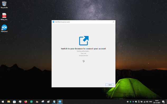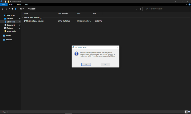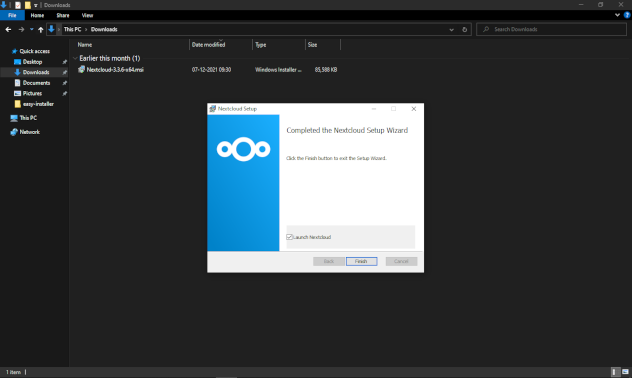 Once your PC has rebooted you should be able to see the NextCloud desktop client application on your PC