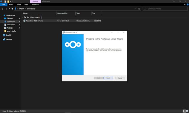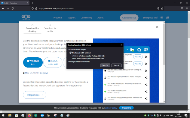 - This open a popup screen which will ask you where to save the NextCloud desktop installer file.