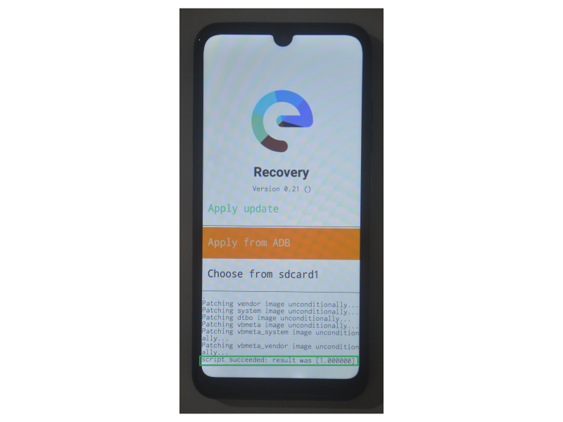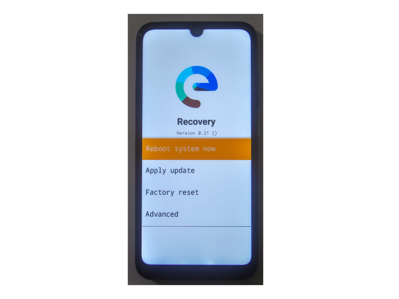- Once the device boots into recovery mode, you will be able to see the /e/OS logo and